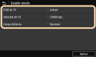 Establiment d'opcions detallades (només quan s'han desat per a la funció de fax)
