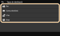 <Opcions de funció> <Enviar> <Opcions de fax>. No obstant això, les opcions definides des de <Llib adreces> estan habilitades per a les opcions detallades de destinacions desades a la llibreta d'adreces. |