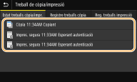 Si <Mostrar registre de treballs> està establert en <Desactivat>, no podeu comprovar el registre del treball de còpia. <Mostrar registre de treballs>