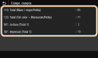 Podeu comprovar per separat els totals del nombre de pàgines utilitzades per a les impressions en color i en blanc i negre. En aquests totals s'inclouen els faxos, els informes i les llistes, a més de les còpies i les impressions de les dades dels ordinadors.