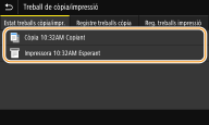 Seleccioneu el document l'estat del qual vulgueu comprovar a la pestanya <Estat treballs còpia/impr.>.