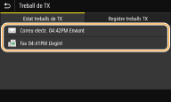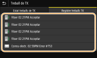Quan <Mostrar registre de treballs> està establert en <Desactivat>, no podeu comprovar els registres dels documents enviats. <Mostrar registre de treballs>