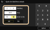 Configureu <Zona horària> abans d'establir la data i l'hora actuals. Si es canvia l'opció <Zona horària>, la data i l'hora actuals també canvien de la manera corresponent.