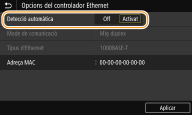Configuració de les opcions d'Ethernet automàticament