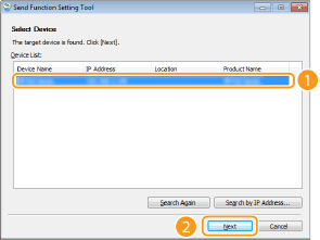Feu clic a [Search Again]. Si el problema persisteix, feu clic a [Search by IP Address], introduïu l'adreça IP de l'equip i, a continuació, feu clic a [OK].