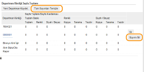 Sayıları sıfırlamak istiyorsanız, [Departman Kimliği] altındaki ilgili metin bağlantısına tıklatın ve ardından [Sayımı Sil]  [Tamam] seçeneklerine tıklatın. Tüm Departman Kimliklerinin sayılarını sıfırlamak istiyorsanız, [Tüm Sayımları Temizle]  [Tamam] seçeneğine tıklatın.
