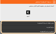 إذا تم عرض رسالة بخصوص خرطوشة الحبر الأسود عند استلام الجهاز لرسالة فاكس/فاكس إنترنت أو في حالة تعيين الإخراج التلقائي للتقارير، فسوف يتم تخزين رسائل الفاكس/فاكس الإنترنت والتقارير المستلمة في الذاكرة حتى لا تظهر بشكل باهت بعد طباعتها. لمتابعة الطباعة حتى عند انخفاض المقدار المتبقي من الحبر في خرطوشة الحبر، اضبط <متابعة الطباعة مع انخفاض الخرطوشة> على <تشغيل>. <متابعة الطباعة مع انخفاض الخرطوشة>