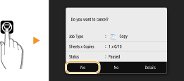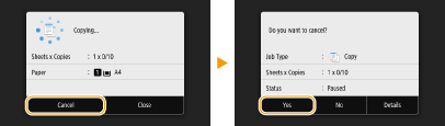 اگر می خواهید درست بعد از انتخاب <Start> کپی را لغو کنید، <Cancel> روی صفحه را انتخاب کرده یا