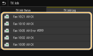 سندی که می خواهید گزارش آن را در زبانه <TX Job Log> یا <RX Job Log> بررسی کنید، انتخاب نمایید.