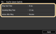 می توانید دستگاه را تنظیم کنید تا زمانی که تماس ورودی در مدت زمان تعیین شده زنگ می خورد به طور خودکار فاکس ها را دریافت کند. <Switch to Auto RX>