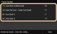 می توانید کل مقادیر جداگانه برای تعداد صفحات استفاده شده جهت نتایج چاپ رنگی و نتایچ چاپ سیاه و سفید را بررسی کنید. این مقادیر کلی شامل فاکس ها، گزارشات و لیست ها علاوه بر کپی ها و نتایج چاپی داده ها از رایانه می شود.