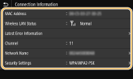 برای مشاهده اطلاعات WEP و WPA/WPA2-PSK، گزینه <Security Settings> را انتخاب کنید.