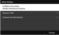 Αν το <Οθ. Όταν Συνδ. Μέσο Μνήμ.> έχει οριστεί στο <On>, θα εμφανίζονται οι διαθέσιμες ενέργειες όταν εισάγετε μια συσκευή μνήμης USB ενώ εμφανίζεται η οθόνη Αρχική. <Οθ. Όταν Συνδ. Μέσο Μνήμ.>
