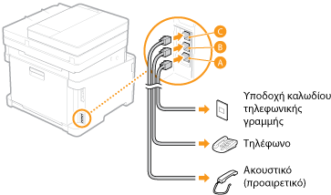 Εάν χρησιμοποιείτε τηλέφωνο ή τηλεφωνητή, συνδέστε το στην υποδοχή εξωτερικού τηλεφώνου (