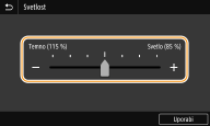 Tapnite <+>/<->, da prilagodite nastavitev na lestvici. Nastavitev lahko prilagodite tudi tako, da povlečete drsni trak v levo ali desno.