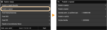 Spremenite lahko različne nastavitve zaslona, na primer jezik uporabniškega vmesnika: <Nastavitve prikaza>