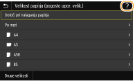 Na nekaterih zaslonih lahko pritisnete gumb <?>, da si ogledate opise funkcij ali navodila za uporabo.
