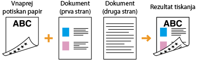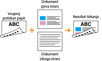 Nastavitev <Preklop načina dodajanja papirja>Če tiskate na potiskani papir, morate spremeniti postavitev naloženega papirja vsakič, ko želite tiskati 1-stransko ali 2-stransko. Če pa je možnost <Preklop načina dodajanja papirja> nastavljena na <Prioriteta strani za tiskanje>, lahko pri 1-stranskem tiskanju uporabite isto postavitev kot pri 2-stranskem tiskanju. Ta nastavitev je koristna predvsem, če pogosto uporabljate tako 1-stransko kot dvostransko tiskanje. <Preklop načina dodajanja papirja>