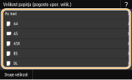 Če velikost papirja, ki jo pogosto uporabljate, registrirate za gumbe od <S1> do <S3>, lahko to velikost izberete z enim dotikom. Registracija velikosti papirja po meri
