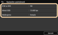 Izberete lahko tudi <ECM za ODD> in <Hitrost ODD> v razdelku <Meni>