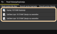 Če je možnost <Prikaz dnevnika poslov> nastavljena na <Izklopi>, si ne morete ogledati dnevnika opravil kopiranja. <Prikaz dnevnika poslov>