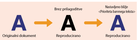 Izberete lahko prilagoditev, da je črno ali skoraj črno besedilo reproducirano v barvi, ki se čim bolj ujema z izvirnikom, ki je bil optično prebran barvno.