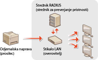 Uporaba operacijske ploščePreverjanje pristnosti IEEE 802.1X lahko omogočite ali onemogočite tudi z možnostjo <Meni> na zaslonu Domov. <Uporabi IEEE 802.1X>