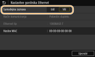 Samodejno konfiguriranje nastavitev Etherneta