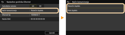 Izmenično pošilja in sprejema podatke za komunikacijo. Izberite, če je naprava povezana v omrežno napravo po sistemu polovičnega dupleksa. <Polni dupleks>