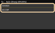 Nastavi napravo tako, da ta samodejno izbere AES-CCMP ali TKIP tako, da bo ustrezalo nastavitvi brezžičnega usmerjevalnika.