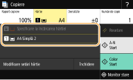 Puteţi mări sau micşora copiile folosind un raport de copiere presetat precum <A5->A4> sau setând un raport de copiere personalizat în paşi de 1 %.