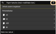 Hainbat pantailatan, <?> botoiak funtzioen deskribapenak edo argibideak ikusteko aukera ematen dizu.