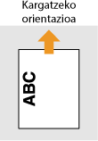 Atal honetan aurretik inprimatutako papera nora begira eta zein orientaziorekin kargatu behar den azaltzen da. Papera paper-tiraderan edo eskuz elikatzeko erretenean kargatzeko prozedura orokorraren deskribapen bat jasotzeko, ikusi Papera paper-tiraderan kargatzea edo Papera eskuz elikatzeko erretenean kargatzea.