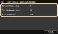 Makina denbora-tarte batean sarrerako deiak hots egiten dutenean faxak automatikoki jasotzeko ezar dezakezu. <Aldatu RX automatikora>