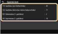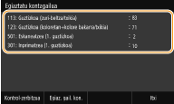 Kolorezko kopientzako eta kopia zuri-beltzetarako erabilitako orrialde kopuruaren guztizko indibidualak begiratzeko aukera duzu. Guztizko kopuru hauek ordenagailuetatik egindako kopia eta inprimatutako dokumentuez gain faxak, txostenak, zerrendak barne dituzte.