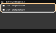 Aurretik erabilitako azken hartzaileen arteko hartzaile bat hauta dezakezu. Aurretik erabilitako hartzaile bat adierazterakoan, makinak eskaneatze ezarpen berak eta hartzaile horretara dokumentuak azken aldian bidaltzerakoan erabilitako dentsitatea ere bai ezarriko ditu.