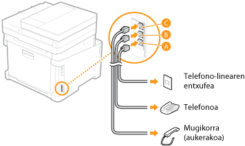 Konektatu makinarekin emandako telefono-kablea makinako telefono-linea entxufeari (