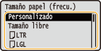 Si no aparece el tamaño de papel cargado, seleccione <Otros tamaños>.