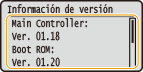 Comprobación de la versión del firmwarePuede comprobar la versión del firmware desde el panel de control del equipo. Cuando termine de actualizar el firmware, compruebe que la actualización ha sido correcta. Comprobación de la versión del firmware |