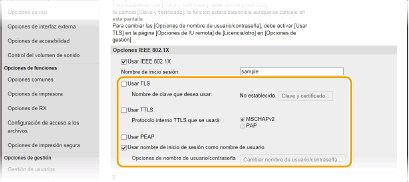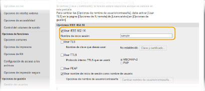 Marque la casilla de verificación [Usar IEEE 802.1X] e introduzca el nombre de inicio de sesión en el cuadro de texto [Nombre de inicio sesión].