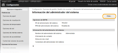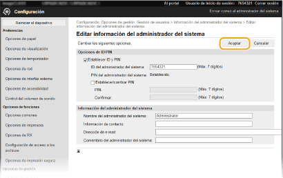 Algunas de las opciones solo pueden cambiarse si ha iniciado sesión en el Modo de administrador del sistema. Algunas opciones podrían requerir unas operaciones distintas a las descritas en este procedimiento. |