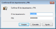 Para enviar un trabajo desde un ordenador cuando se haya habilitado la Administración de ID de departamento, deberá introducir el ID y el PIN correctos (