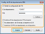Registre un ID de departamento y establezca un PIN para ese ID. Registre todos los ID de departamento que haya que administrar.