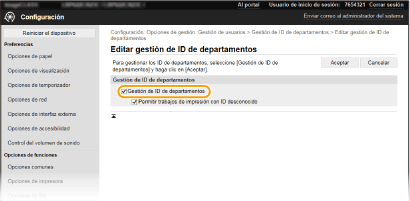Seleccione la casilla de verificación [Gestión de ID de departamentos].