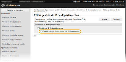Después de registrar los ID de departamento necesarios, habilite la Administración de ID de departamento.