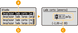 <Densidad> <Amarillo>/<Magenta>/<Cian>/<Negro> 17 niveles <Densidad (Ajuste fino)> <Amarillo>/<Magenta>/<Cian>/<Negro> <Alta>/<Media>/<Baja> 17 niveles |
