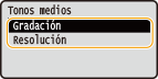 Seleccione <Priorizar resolución> o <Priorizar gradación>