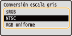 <Texto> <sRGB> <NTSC>  <RGB uniforme> <Gráficos> <sRGB> <NTSC>  <RGB uniforme> <Imagen> <sRGB> <NTSC>  <RGB uniforme> |
