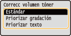 <Estándar>  <Priorizar gradación> <Priorizar texto> |