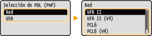 Seleccione <Red> o <USB>